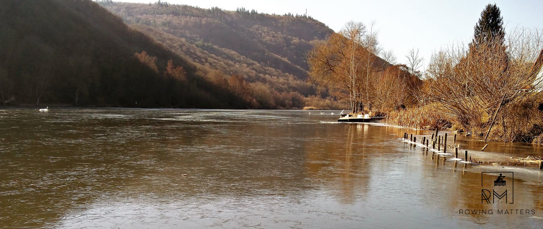 Niederhausen an der Nahe vom Eis überrascht. Aber glücklicherweise haben wir ja zwei Ruderreviere in der unmittelbaren Nähe. Auf dem Mühlenteich und an der Roseninsel in Bad Kreuznach gab es kein Eis, sondern Sonne und eisigen Wind satt! So kamen im Doppelzweier immerhin noch geruderte 15 km zusammen.