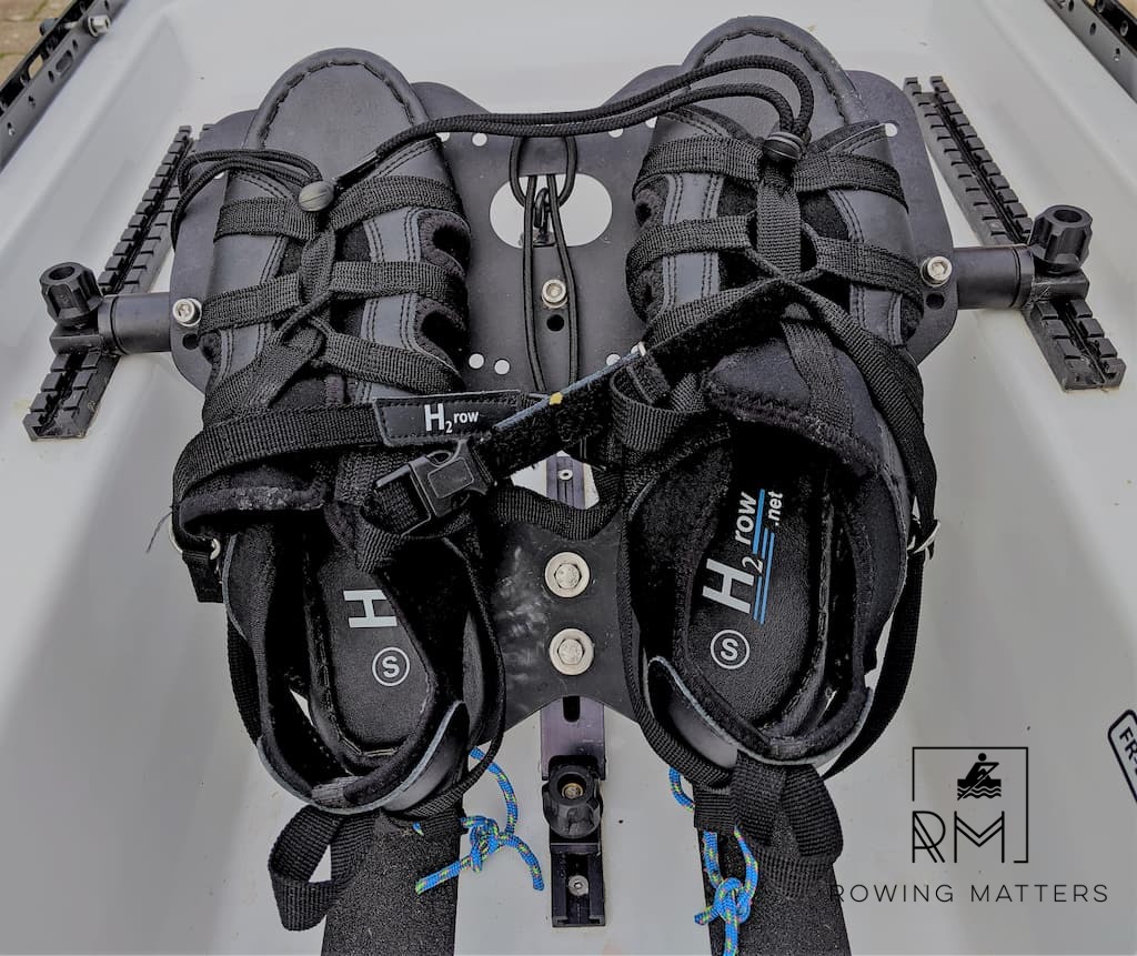 Nun bin ich stolzer Besitzer meines eigenen Bootes. Da liegt es nahe, auf die Socken zu verzichten. Aber in üblichen Ruderschuhen schwitzen die Füße schnell unangenehm - das gilt auch für meine Schuhe von Active Tools. So bin ich auf die Ruder-Sandalen von H2Row gestoßen: der Club Model Shoe