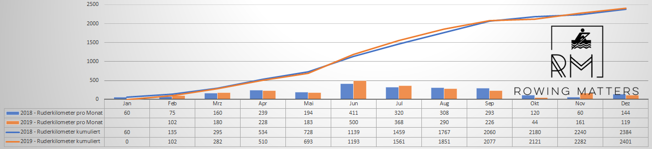Das Jahr 2019 ist Ende. Zeit für eine Bilanz aus rudersportlicher Sicht. Insgesamt stellt sich mein ruderisches 2019 sehr ähnlich zum Vorjahr dar: