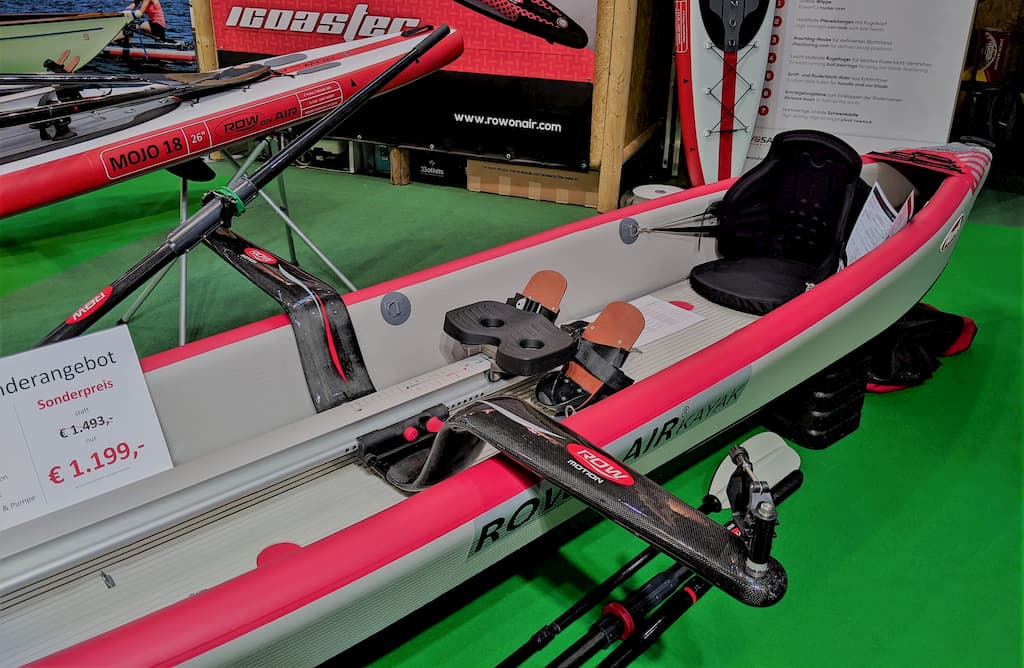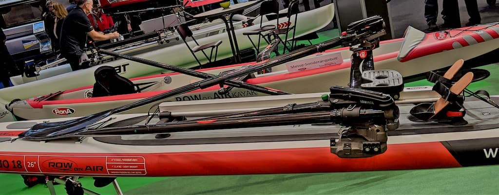 ROWonAIR baut »aufblasbare Ruderboote«. In einer Variante werden aufblasbare Stand Up Paddle (SUP)-Boards um Rollschiene,-Sitz, Stemmbrett und Ausleger ergänzt. In der zweiten Variante erinnert die Form mehr an ein Kanu - es gibt also eine hochgezogene Bordwand.